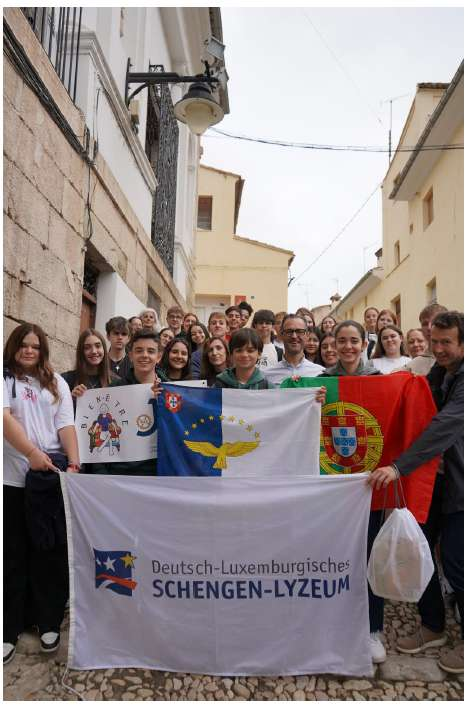 Nous, Julie Suhren, Eliza Naggi, Emily Desmarquest, Alica Kouakou, Anthony Soeldner, Romy Rodé, Gabin et Jules Girard Houin avons participé au projet Erasmus+ « Agir pour notre bien-être » à Ontinyent (province de Valence en Espagne). Nous avons été accueillis par nos partenaires du lycée IES Jaume I à Ontinyent. Le 4 septembre 2025, nous avons pris l’avion avec nos professeurs Rolf Hobbold et Dunja Weber du Luxembourg jusqu’à Alicante ! Chacun d’entre nous a été hébergé pendant une semaine dans une famille d’accueil. Dans l’école de nos correspondants espagnols, nous avons participé à de nombreuses activités comme le yoga et le Raspall, qui se joue typiquement dans la région de Valence.
