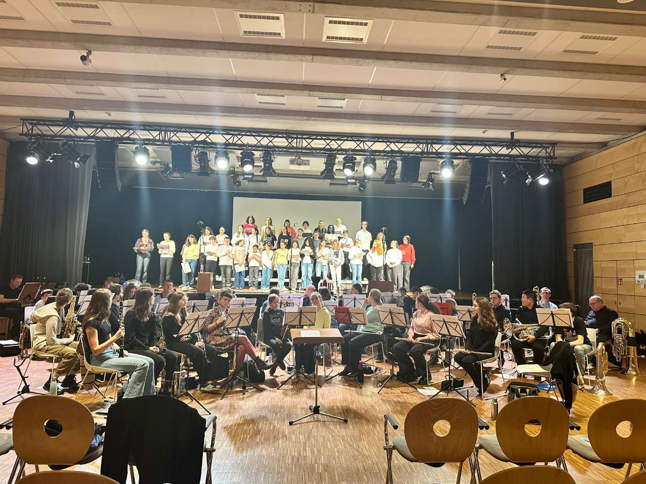 Am 07.01.2026 machten sich Schülerinnen und Schüler sowie einige Lehrkräfte des SLP auf den Weg ins Atert-Lycée Redange, dort gemeinsam mit ihren Projektpartnern für das Abschlusskonzert von „Musik ohne Grenzen“ zu proben.